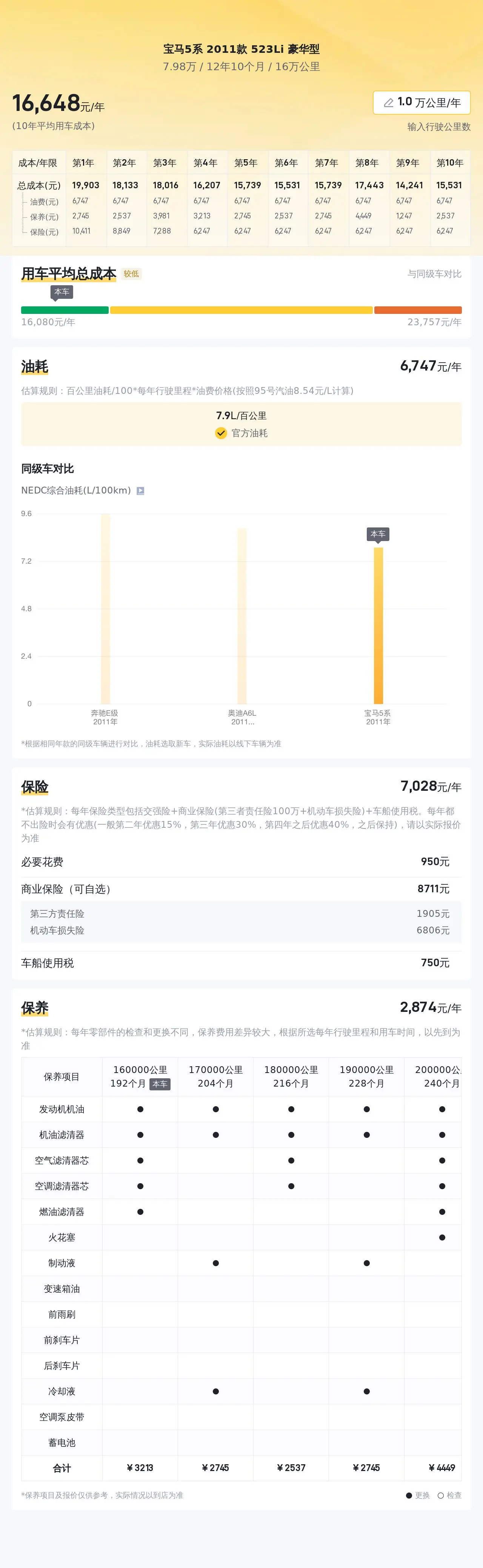 就使用成本而言,根据我们的估算,这辆车的年均综合用车成本大约为1.7万元。当然,这个数字会根据个人使用习惯而有所波动。