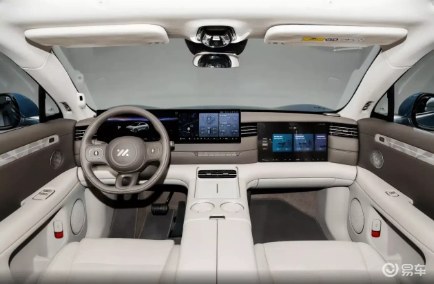 内饰设计显然开始向市场妥协,取消了原先较为夸张的窄边框带鱼屏,转而为副驾驶配备了超大尺寸的娱乐屏幕。这样的设计使得整个中控台面显得不对称,但大屏幕的视觉效果确实非常出色。