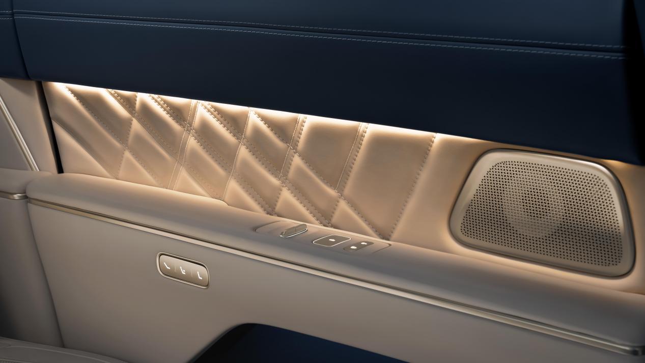 拉开门把手,仪式感扑面而来:全车“意境光幔”从远及近逐渐点亮,天行智能底盘自动降低车身高度,照地灯、门槛灯同时亮起,仿佛在迎接主人的到来。无框车门+隐藏式门把手设计,平行抽屉式弹出,简洁纯粹中透露着高级感。