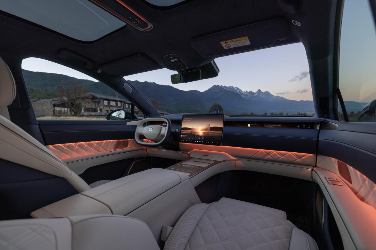 值得一提的是,ET9采用了全域900V高压架构,拥有最高电压925V、充电峰值功率600kW。这意味着5分钟充电可增加255km续航,补能效率堪比加油。