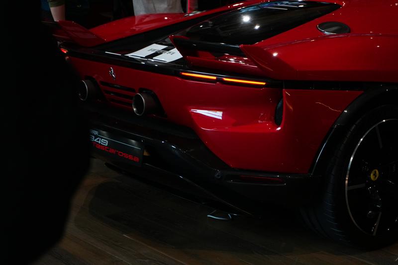 新车尾部采用了源自法拉利512 S的双尾翼结构,两个扰流板(即双尾翼)利用流经充满肌肉感的后轮拱罩顶部的强大气流,为车尾提供了10%的下压力。