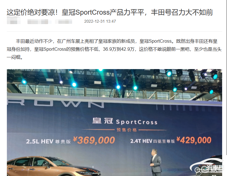无论从品牌形象、产品力、价格等任何维度来看,这辆“全新皇冠”在同级竞品面前都没有优势。