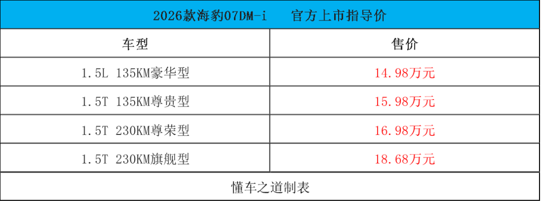 外观上,2026款海豹07 DM-i整体是比较前卫,新车大灯很犀利,内部为LED光源,前脸上半部分为封闭式格栅,下进气格栅为梯形格栅,前唇比较扁平。高配车型还将配备激光雷达,顶配车型配备天神之眼B辅助驾驶方案,将具备城区辅助驾驶能力。外观配色上,新增云海灰车色,共计推出4款车身颜色,云海灰、暖色烟茶、亚特兰蒂斯灰、曜石黑。