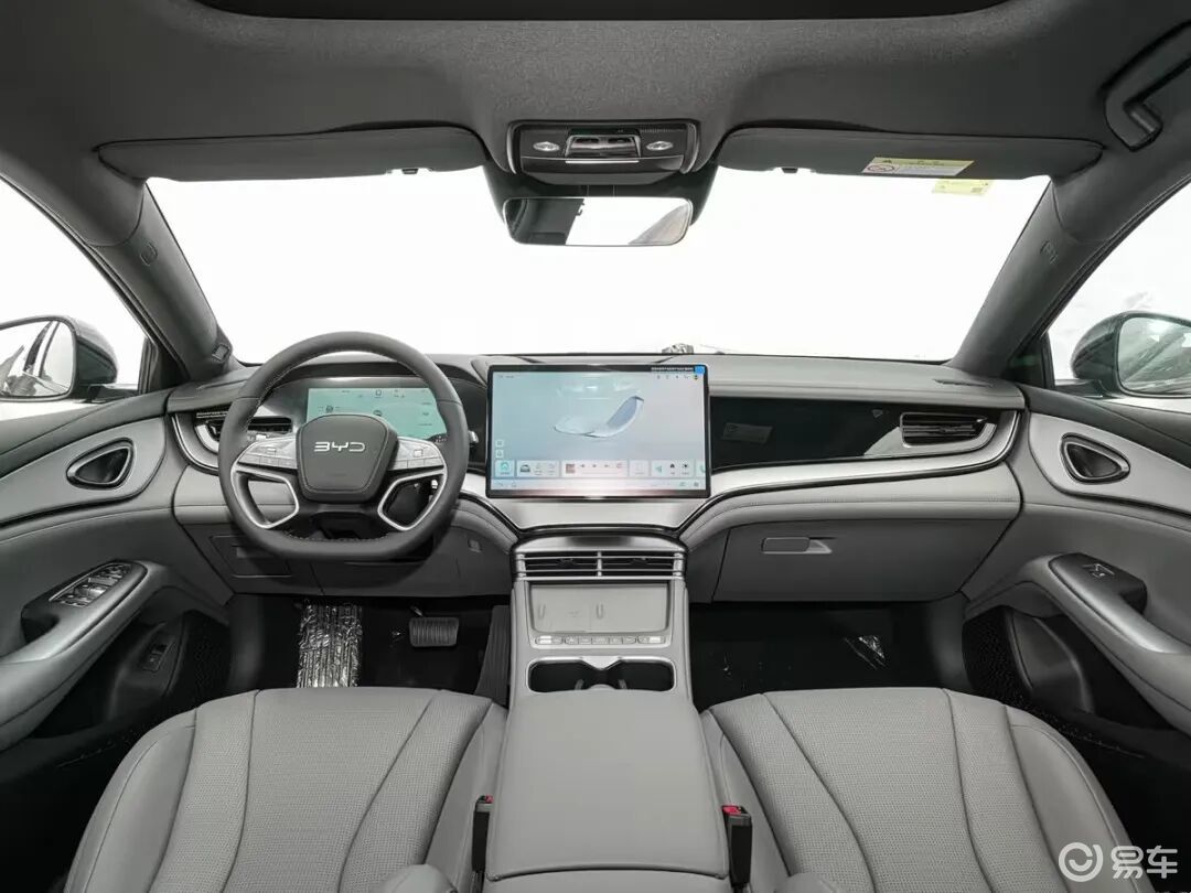 内饰方面,大家熟悉的的比亚迪内饰,内饰用料和做工,主流水平。人体工学也得到兼顾。具体来看,搭配多幅式方向盘,采用怀挡式设计。智能化方面,配备10.25英寸液晶仪表+15.6英寸悬浮式中控屏。