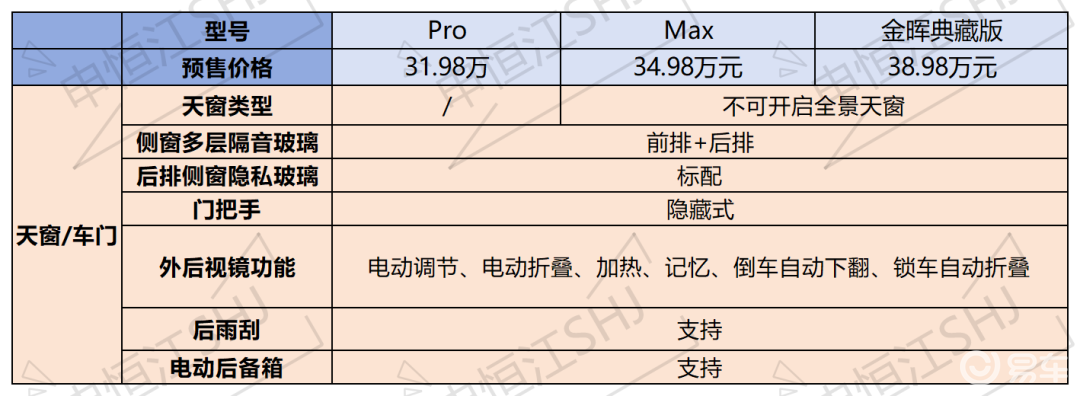 1.低配估计是没有天窗的,前排和后排都有隔音玻璃,这辆车还搭载了主动降噪功能,后面会降到,隔音效果不错。