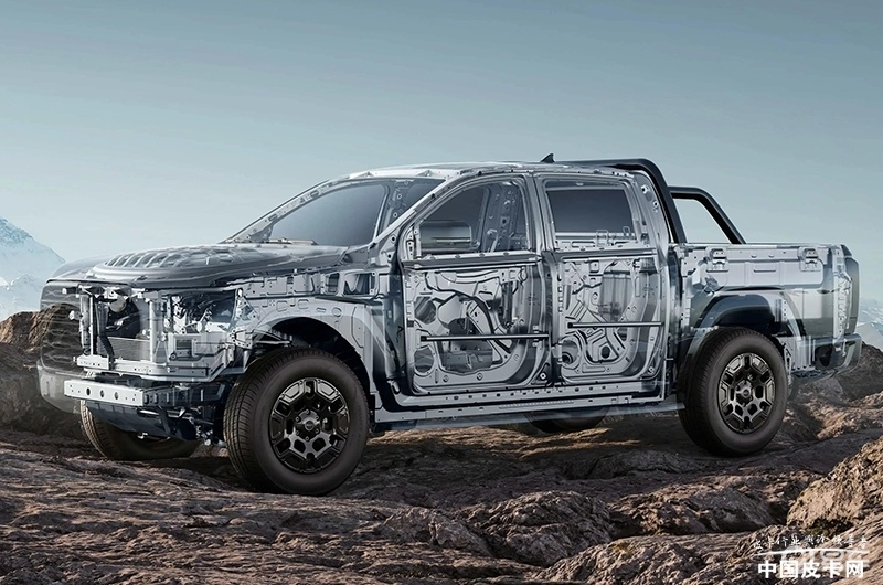 对于身处山区的用户来说,在崎岖路面、交叉轴等极端情况下,车架独自承受扭曲力,化解地面冲击,确保车身整体稳固,能有效防止车身变形、车门关不上、内饰异响等问题,再加上专为重载设计的钢板弹簧,让它具备了与传统皮卡相当的承重与烂路行驶能力。