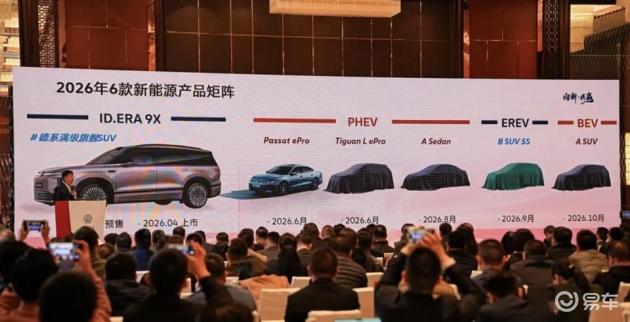 从曝光的谍照来看,新车深度沿袭了ID.ERA 9X的“大气、纯粹、硬朗”设计语言,同时优化了尺寸比例,以适应紧凑型SUV的定位,兼顾气场与灵活性。前脸部分,采用了封闭式格栅设计,契合纯电车型的特性,搭配环宇光翼贯穿式灯带与发光品牌LOGO,与ID.ERA 9X的灯组设计形成呼应,夜间点亮后辨识度极高;大灯组采用数字化造型,内部点阵式光源提升了精致度,下包围采用三段式布局,两侧通风口优化了气流循环,兼顾散热与空气动力学表现,减弱了传统燃油车进气格栅的存在感。