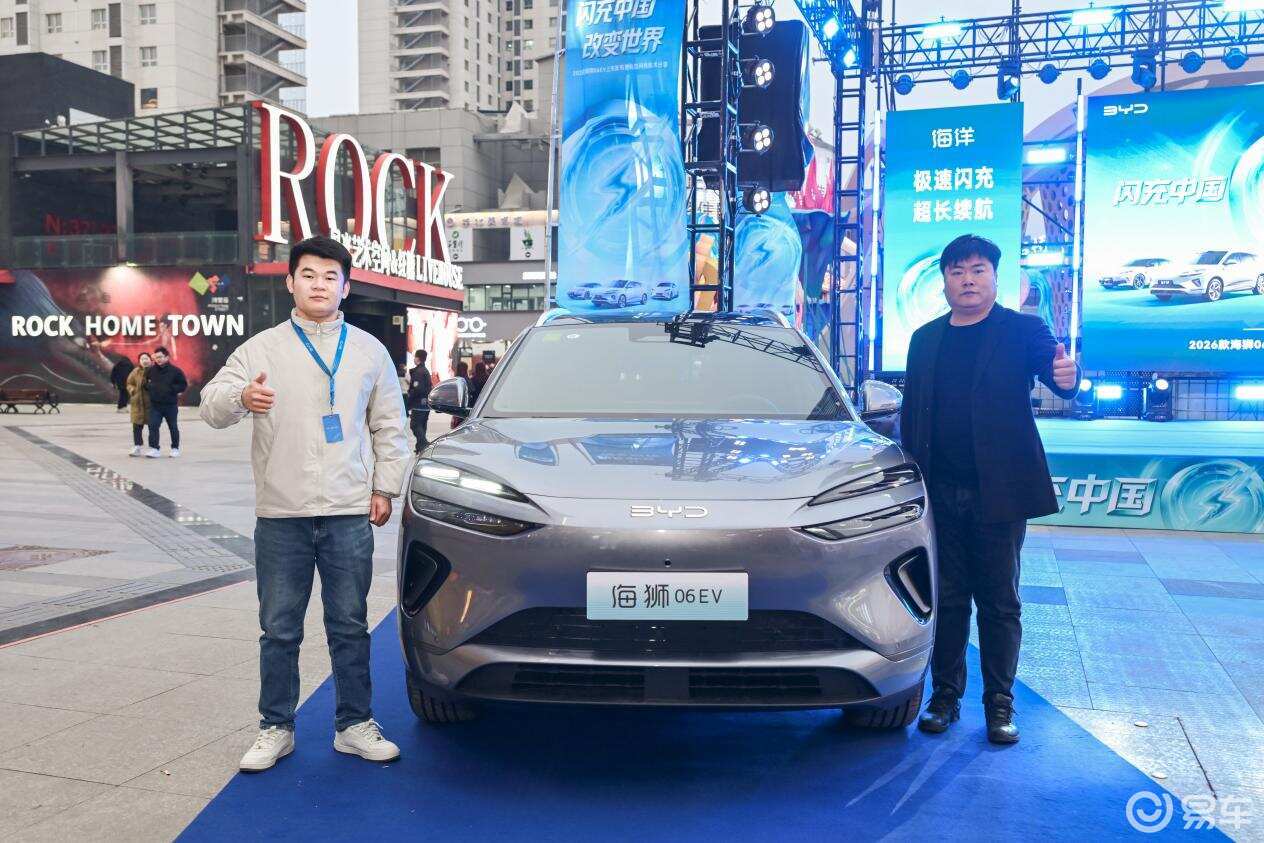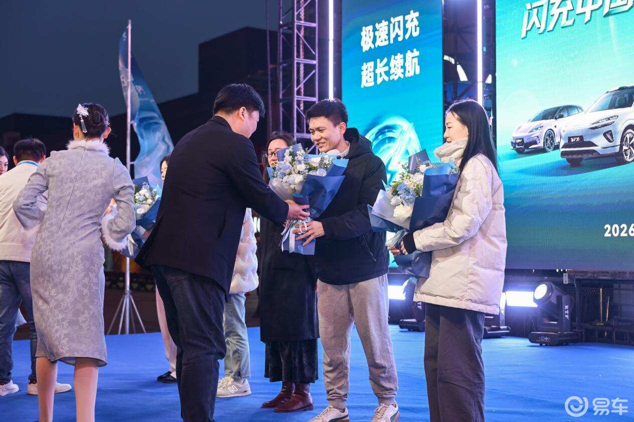 魔术表演结束后,本次上市会迎来了激动人心的首批车主交车环节,比亚迪相关领导为2026款海狮06EV首批车主送上专属礼遇并完成交车。这一环节不仅是车主们喜提爱车的荣耀时刻,更是比亚迪品牌与用户之间美好联结的生动见证。