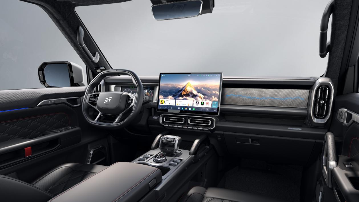 骏马版双车打破“硬派=不舒适”的传统认知,在保持越野性能的同时,把座舱品质提升到家用豪华标准。旅行者骏马版采用硬派豪华软包与G318光刻饰板,搭配超大尺寸全景天窗,视野通透、格调高级;搭载高通8155芯片与TOUR OS 3.0系统,配合L2级智能辅助驾驶、540°全景影像,城市通勤轻松便捷,长途穿越稳定安心。