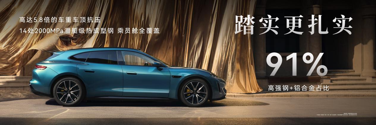 安全是最大的豪华,尚界Z7、尚界Z7T以硬核车身,为用户筑牢出行安全防线。车身高强钢与铝合金占比高达91%[10];全车14处2000MPa潜艇级热成型钢9,高达5.8倍9车重车顶抗压,为乘员舱提供坚实保护。