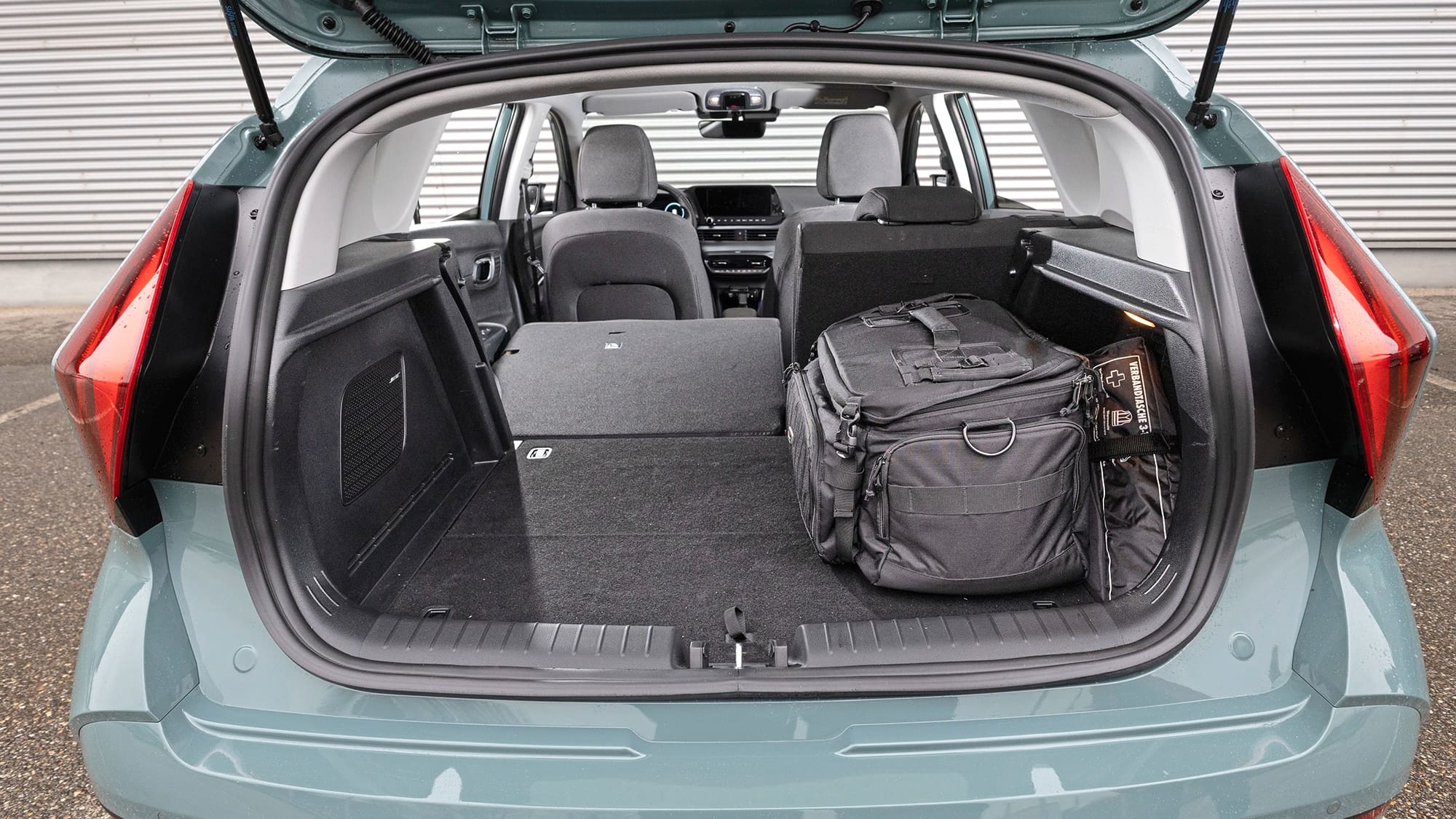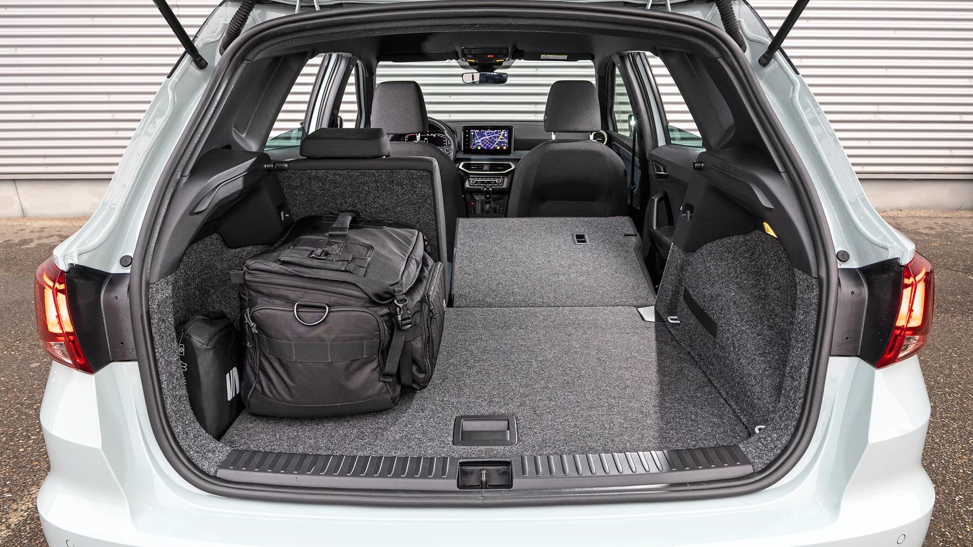 后排同样如此:成年人坐着尚可,但若计划坐八小时出游,最好还是坐前排。腿部空间充裕,但身高超过1.85米的人需要压低头部,这归咎于跨界车身设计。行李厢在五座情况下容量最大,后排座椅放倒后几乎平整,折叠比例为60:40,但没有贯通通道。