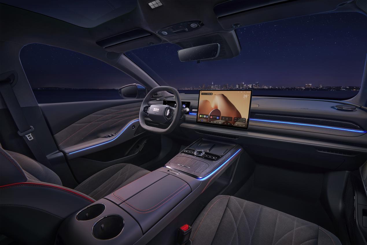 车内配备同级唯一VIP电动行政座椅,536mm超长座垫、100mm滑动距离、131°靠背角度,加热、通风、8点按摩全覆盖;副驾可180°躺平,和后排连成“豪华按摩沙发床”,搭配后排独立控制面板、老板键,后排舒适度直接对标豪华行政轿车。
