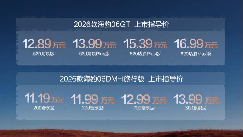 4月2日,比亚迪海洋网正式推出2026款海豹06GT,售价12.89万元-16.99万元。