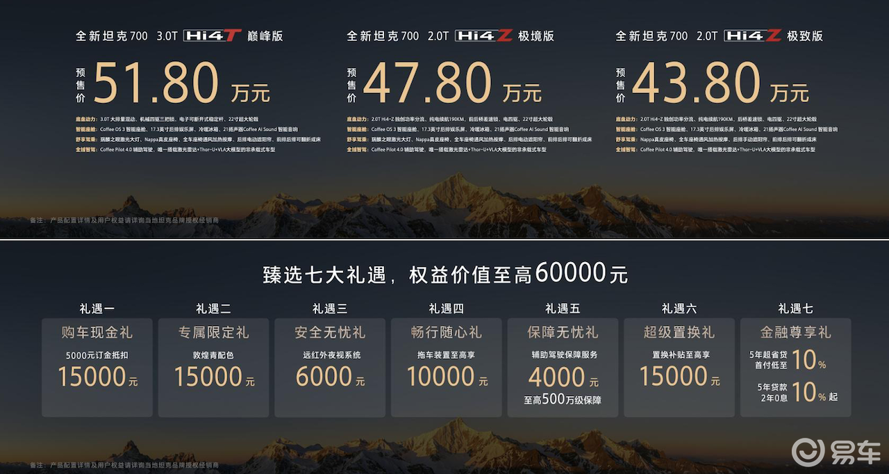 动力系统是坦克700的另一大亮点。新车提供3.0T Hi4-T与2.0T Hi4-Z双旗舰动力选择,一套满足极限越野的极致性能需求,一套主打城市泛越野的全能表现,彻底打破了"强悍不智能、豪华不越野"的品类固有边界。